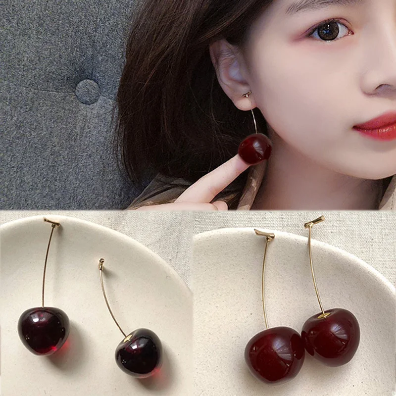 Серьги, 1 пара, 2020New Arrival, милые, уникальные, имитация смолы, красные, вишневые, золотые, фруктовые, для женщин, девушек, студентов, подарок