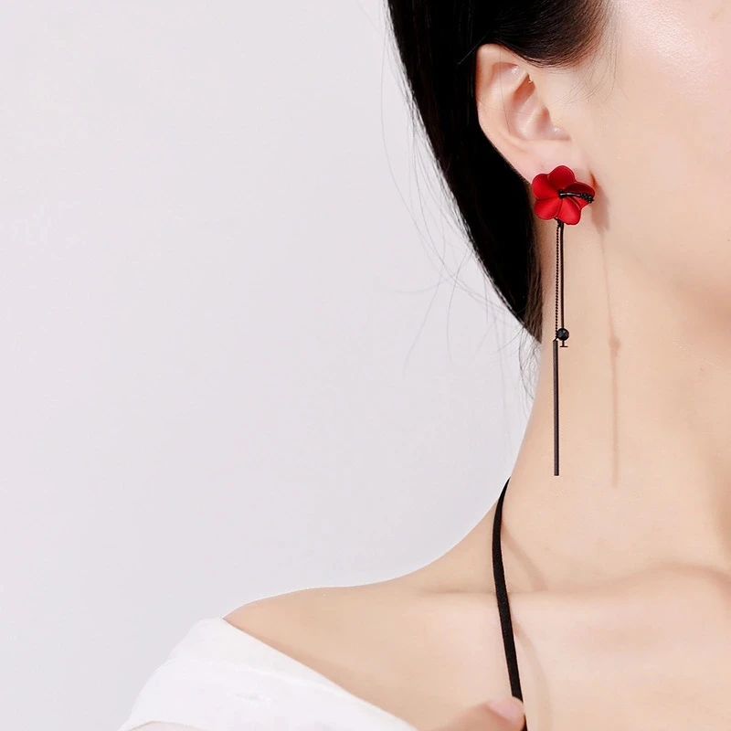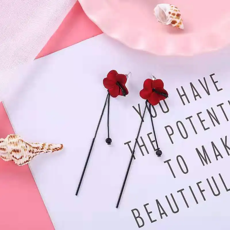 Женские серьги с цветком, черные длинные серьги с кисточками в Корейском стиле, красные, желтые, белые серьги-гвоздики для свадебной вечеринки, 2019