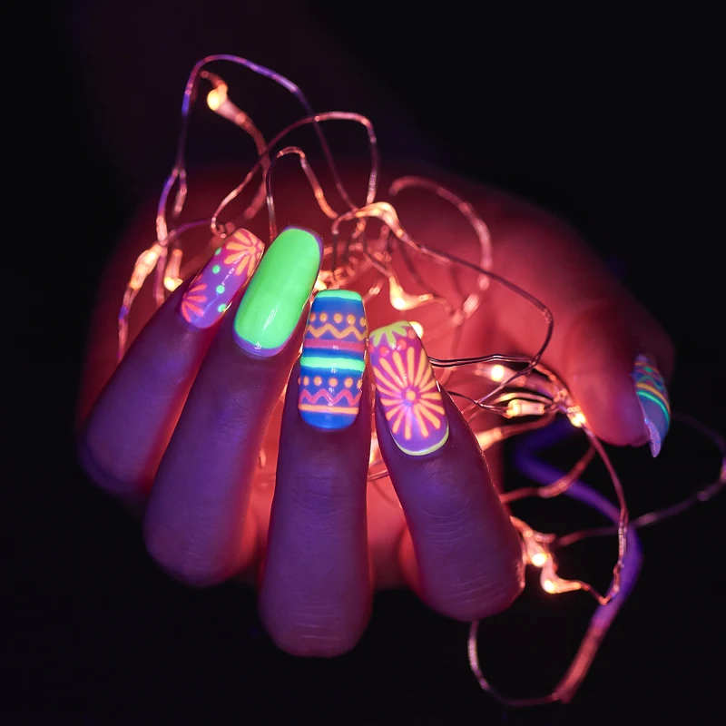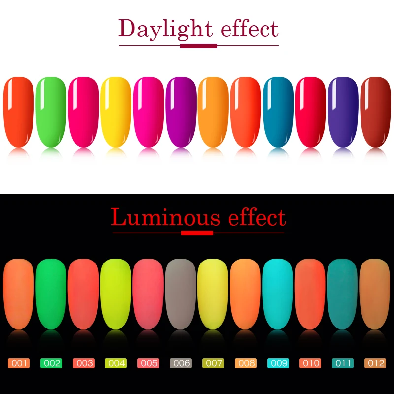 Шаг 4. Нанесите первый слой цветного светящегося геля непосредственно, закрепите УФ-лампой в течение 2 минут или вылечите светодиодный светильник в течение 60 секунд.