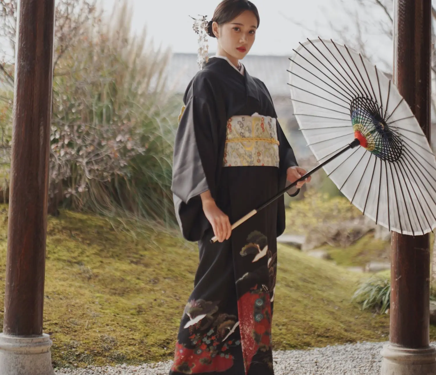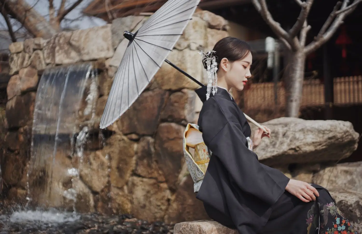 Женское длинное кимоно в японском стиле, черное платье в стиле юката в стиле ретро с принтом облака и сумочкой, 2019
