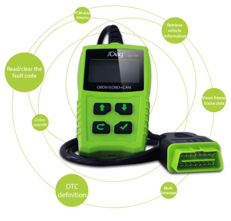 Применим к большинству отечественных и импортных 1996 и более новых транспортных средств (OBD II и CAN) встроенная функция тестирования I/M ready для быстрого считывания состояния датчика для определения рабочего состояния транспортного средства светодиодный дисплей с высоким разрешением и встроенный динамик позволяют пользователям не пропускать ни одну часть процесса тестирования извлекать общие коды (P0, p2, P3 и U0), специальные коды производителя (P1, P3 и U1) могут считывать временные коды неисправностей, хранение кодов неисправностей и замороженных кодов неисправностей поддерживает 5 протоколов, таких как протокол CAN и протокол K-line легко найти причину индикатора неисправности (MIL) выключить индикатор неисправности (MIL), Очистка кода и сброс функции мониторинга отображение определения DTC на цветном экране TFT считывание кода транспортного средства считывание информации о калибровке транспортного средства, калибровка ID, отображение кода проверки калибровки монитор и состояние готового I/M (emission) считывает функцию потока данных в реальном времени, сколько PID записей в артикуле извлекает информацию о транспортном средстве (VIN, CIN и CVN) многоязычные меню и определения DTC-английский, испанский, французский, немецкий, итальянский, португальский, русский, китайский, японский и т. д. онлайн обновления и обновления