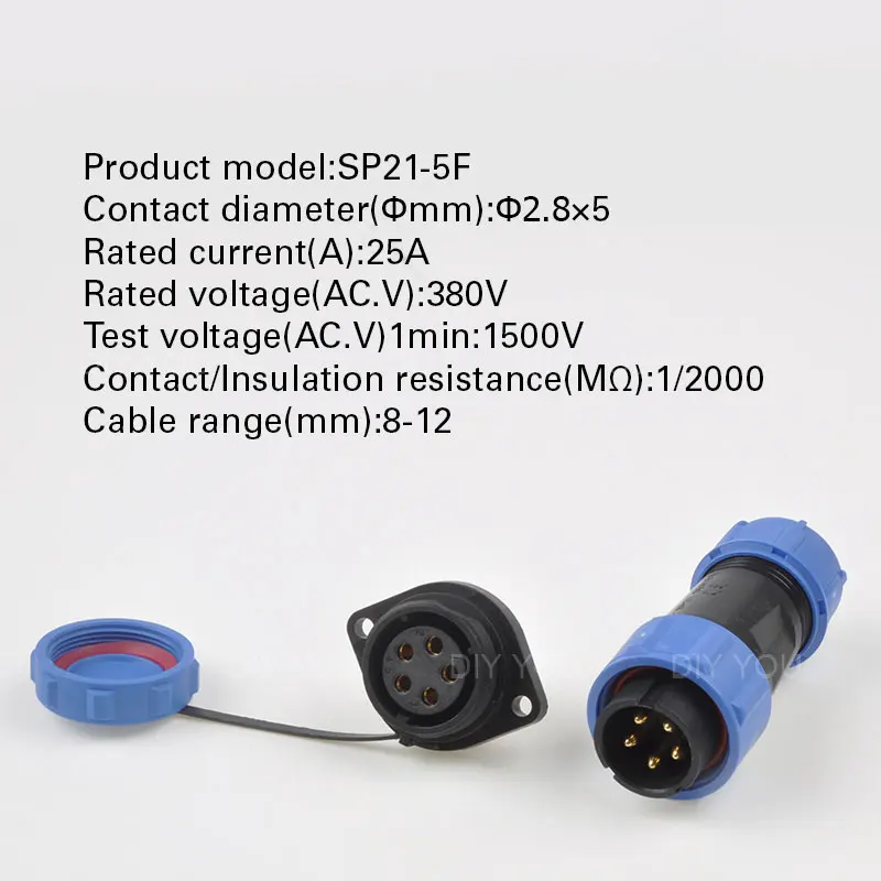 Тип разъёма: SP21-F Количество штифта: 2 контакта, 3 контакта, 4 контакта, 5 контактов, 7 контактов, 9 контактов, 12 контактов Водонепроницаемый уровень: IP68 Возраст упаковки (комплект): 1 х разъем