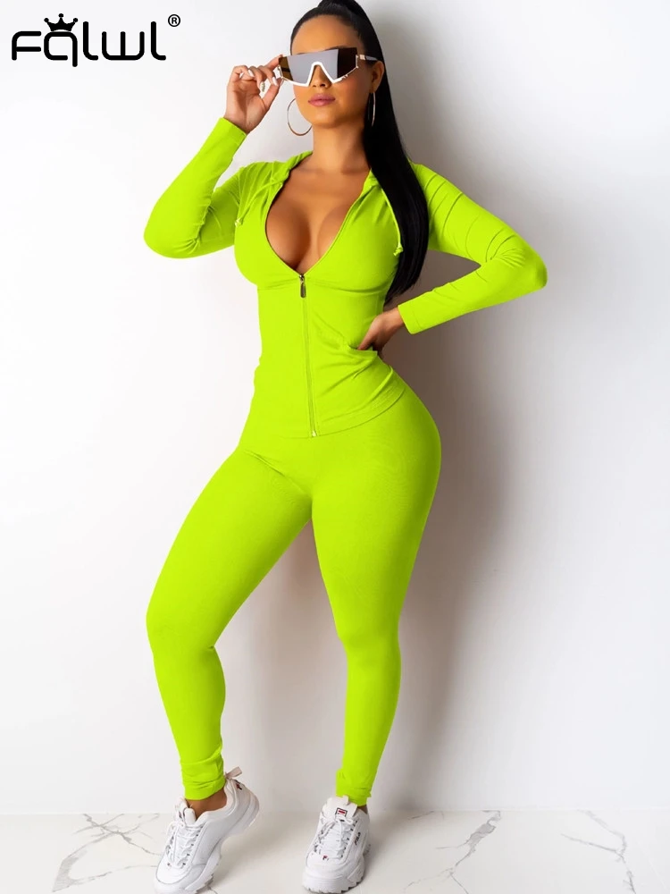 FQLWL Повседневный облегающий комплект из двух предметов для фитнеса, Женский костюм на молнии с длинным рукавом, толстовки и обтягивающие штаны, женский спортивный костюм, женская одежда