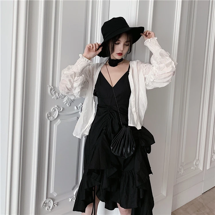 Сексуальное черное женское платье на шнуровке летнее праздничное бретельках с v