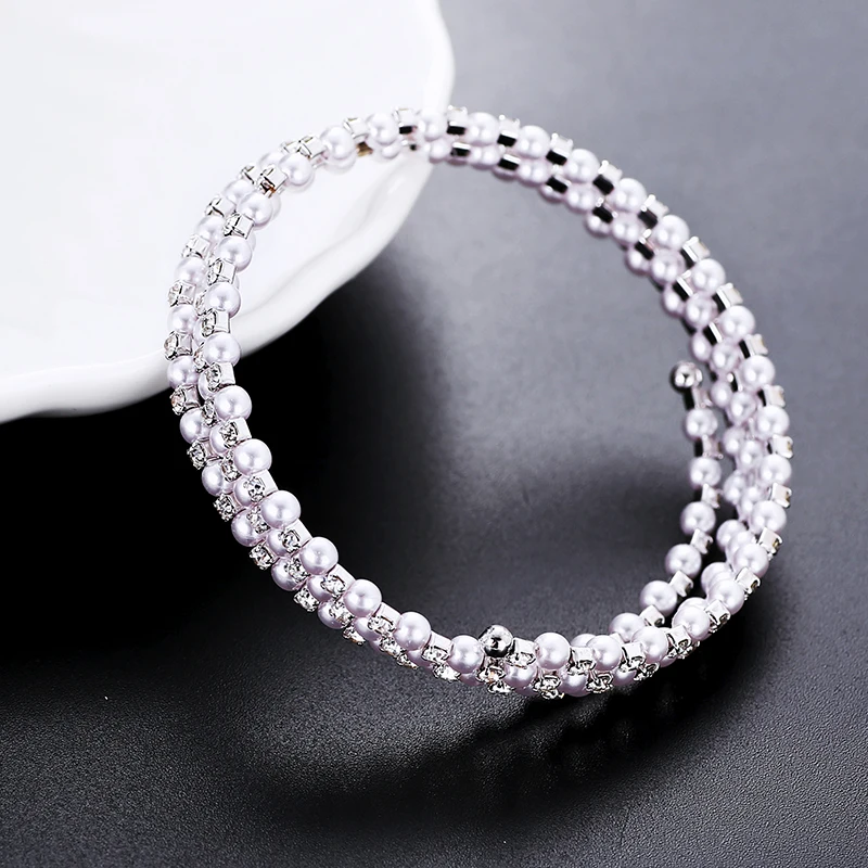 Очень девушки Многослойные белые браслеты с жемчужными бусинами Шарм Регулируемый имитация жемчуга браслет для женщин