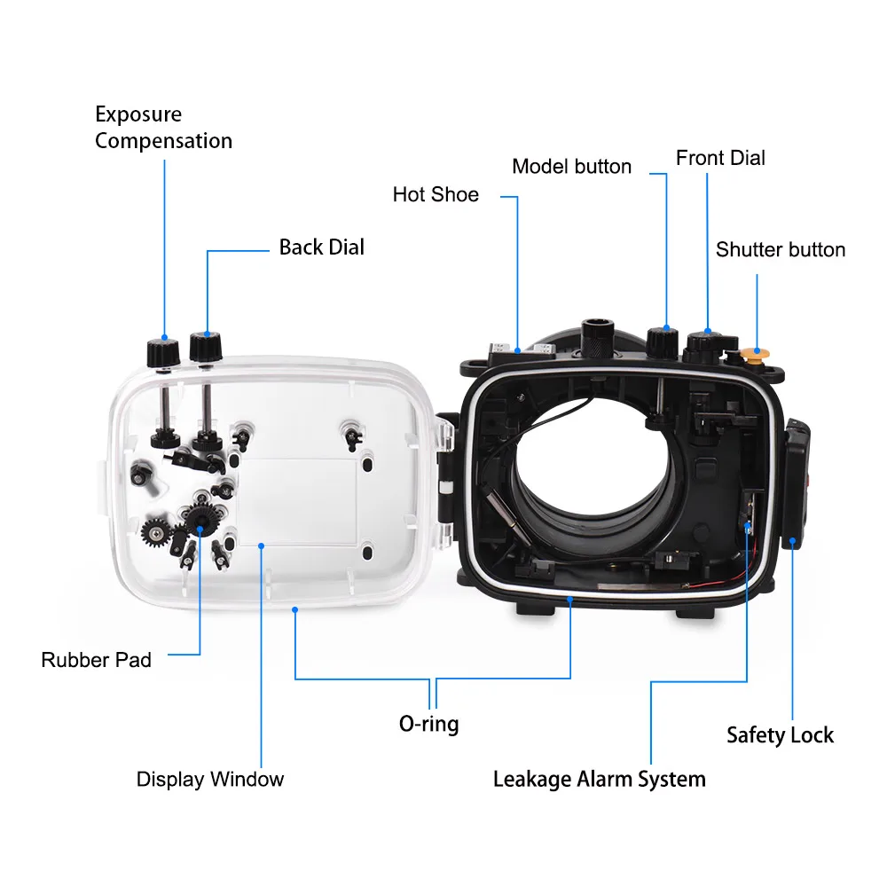 Подводный Корпус для Sony A7 II (белый) Стандартный плоский порт 6 "сухой купол порт Зум-передача для объектива 28-70 мм Руководство пользователя Запасное кольцо O'ring Плечевой и наручный ремень
