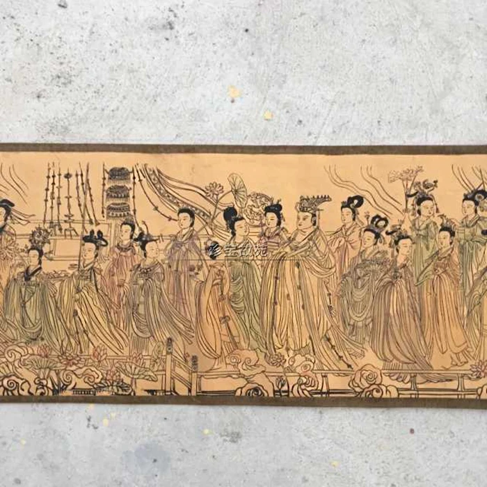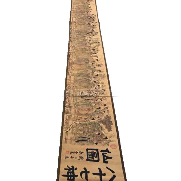 Древняя длинная прокрутка, китайская картина, украшение для гостиной, чтобы сделать старое подвесное [87 бессмертных] прокрутка картины.