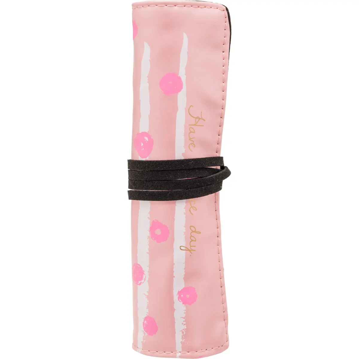 Пенал-рулон действий, без наполнения, на завязках, на 9 предметов, размер 18.5х23 см в раскрытом виде, для девочек; нежно розового цвета.с принтом. Внутри пенала имеется 9 отделений различных размеров для хранения канцелярских принадлежностей, в верхней части внутренней стороны расположен клапан, препятствующий выпадению содержимого. Пенал скручивается в рулоне и закручивается Упакован в индивидуалю коробочку с евровидением и инфиформационым стикером. Материал-искуст. кожа/полиэстер