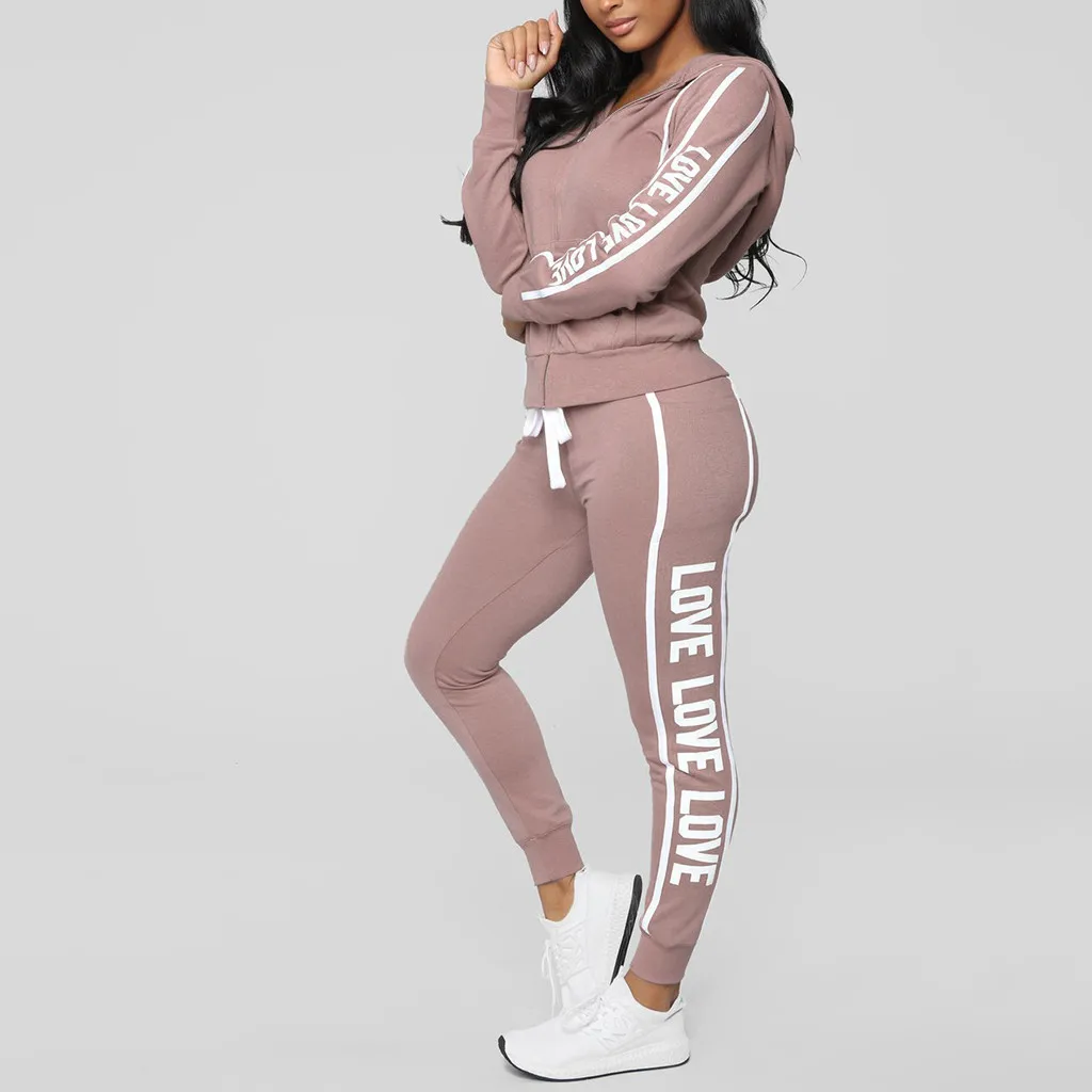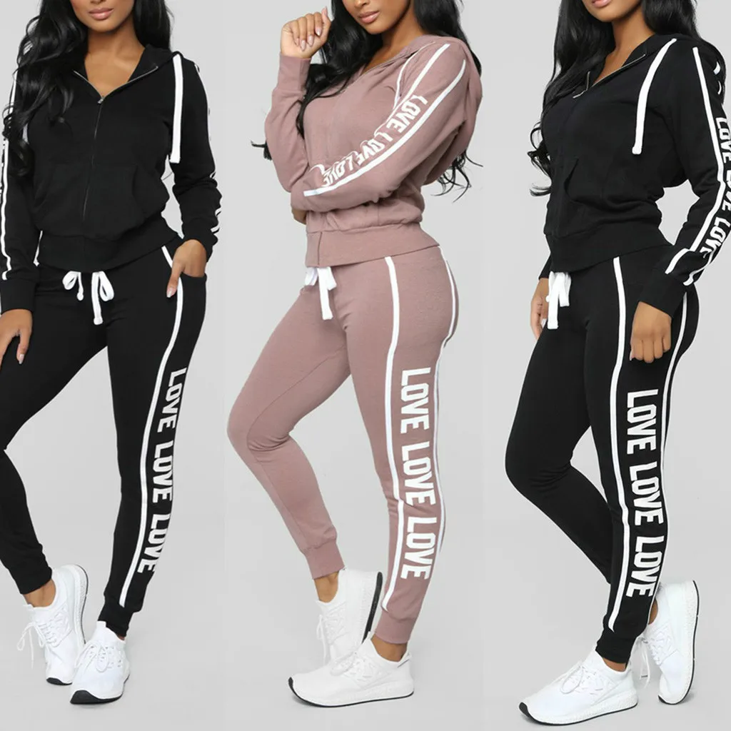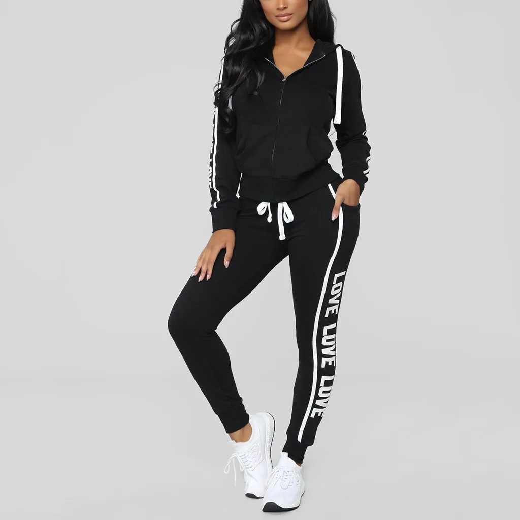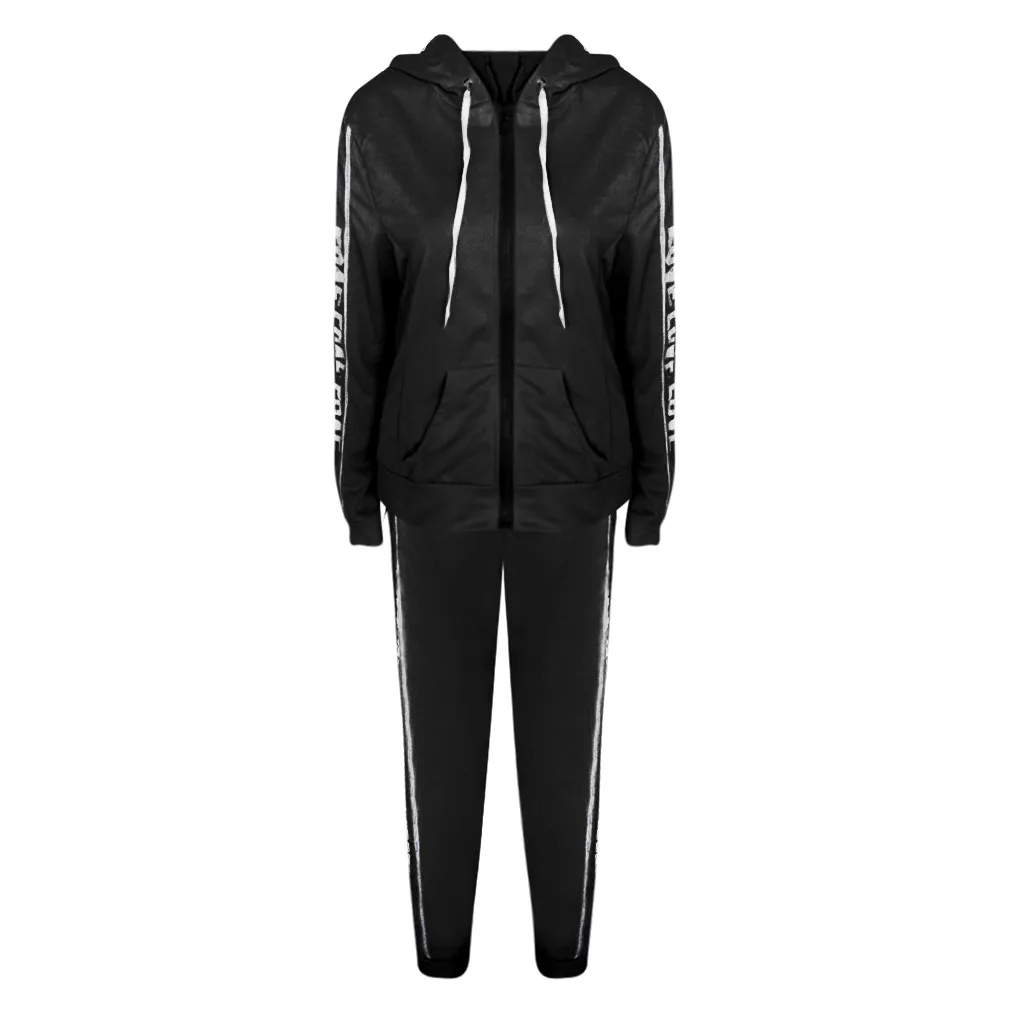 Повседневный Спортивный костюм Модные женские повседневные полосатые на молнии с длинным рукавом Pullove спортивные топы + длинные брюки набор брючный костюм для женщин