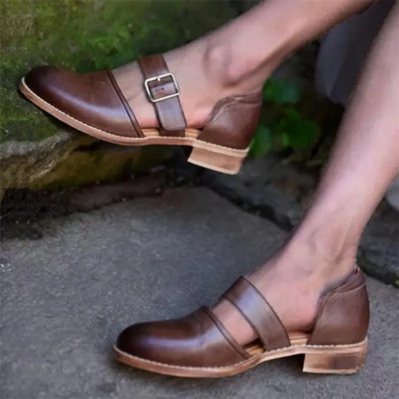 Женские летние туфли-лодочки повседневная обувь на низком массивном каблуке Женские винтажные босоножки с вырезами из искусственной кожи с круглым носком mujer sapato feminino HP1513