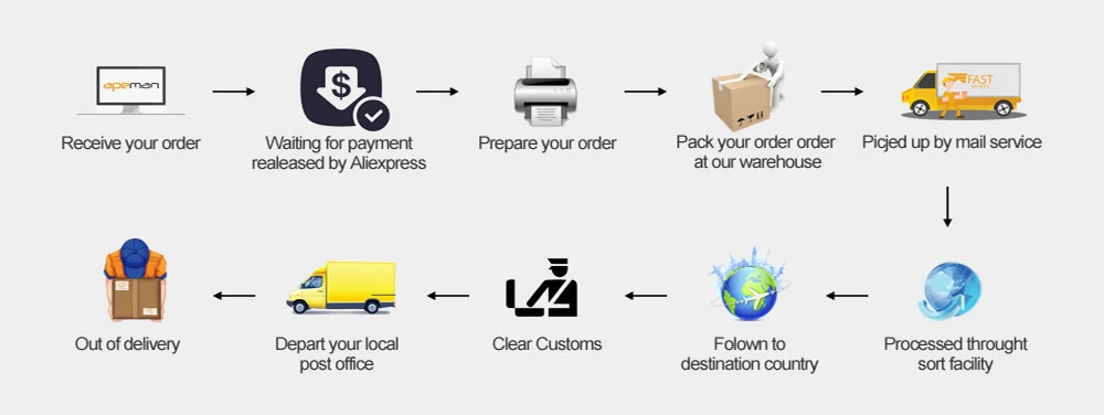 7. Из-за наличия на складе и разницы во времени, мы выберем доставку Вашего товара с нашего первого доступного склада для быстрой доставки.