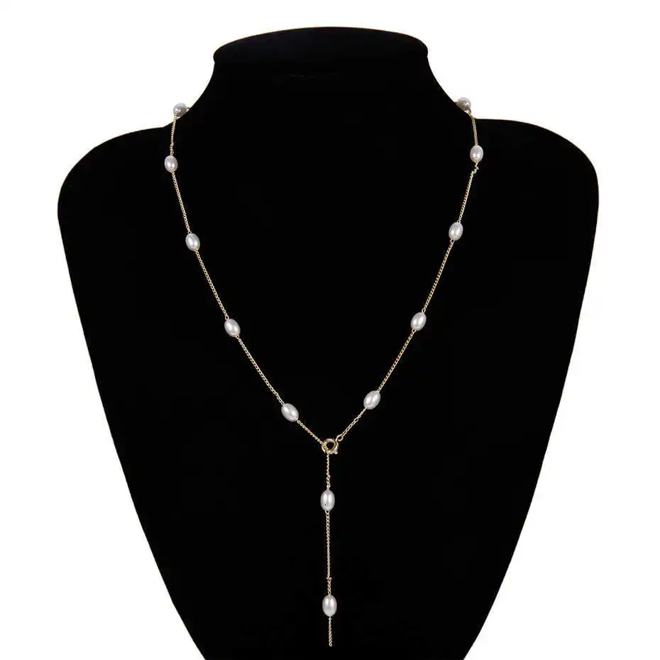 Чокер IngeSight.Z Женский длинное ожерелье в стиле бохо с имитацией жемчуга простая