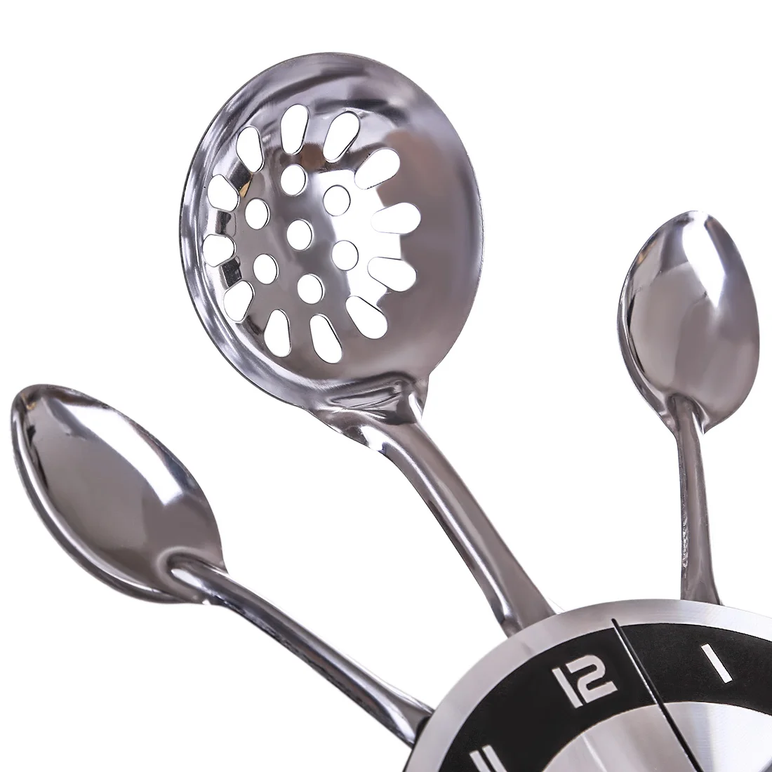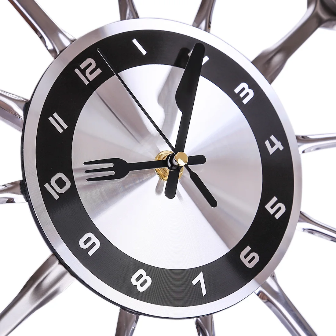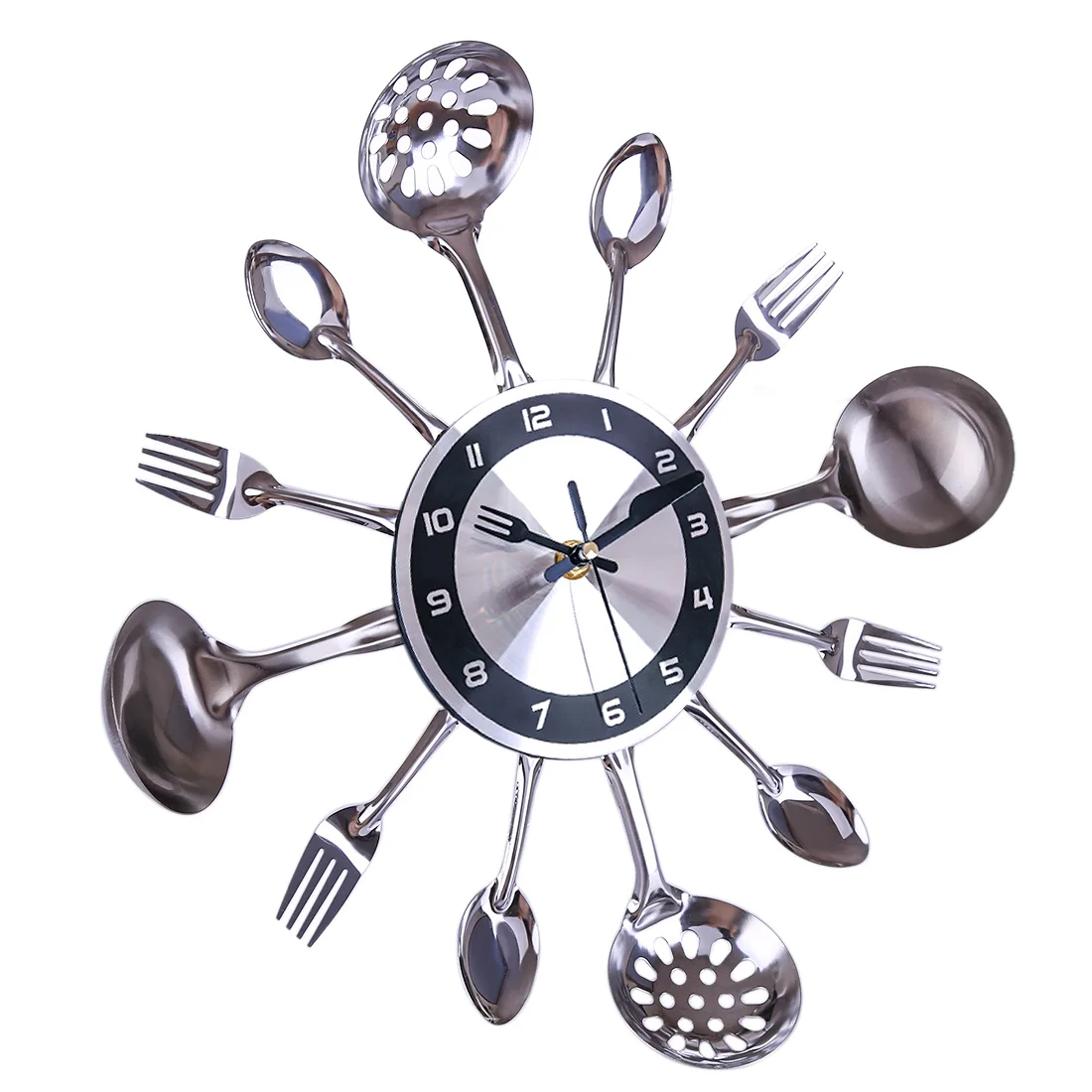 35 см нержавеющая сталь кухонные ложки вилка часы бесшумные настенные часы для домашнего декора-серебро