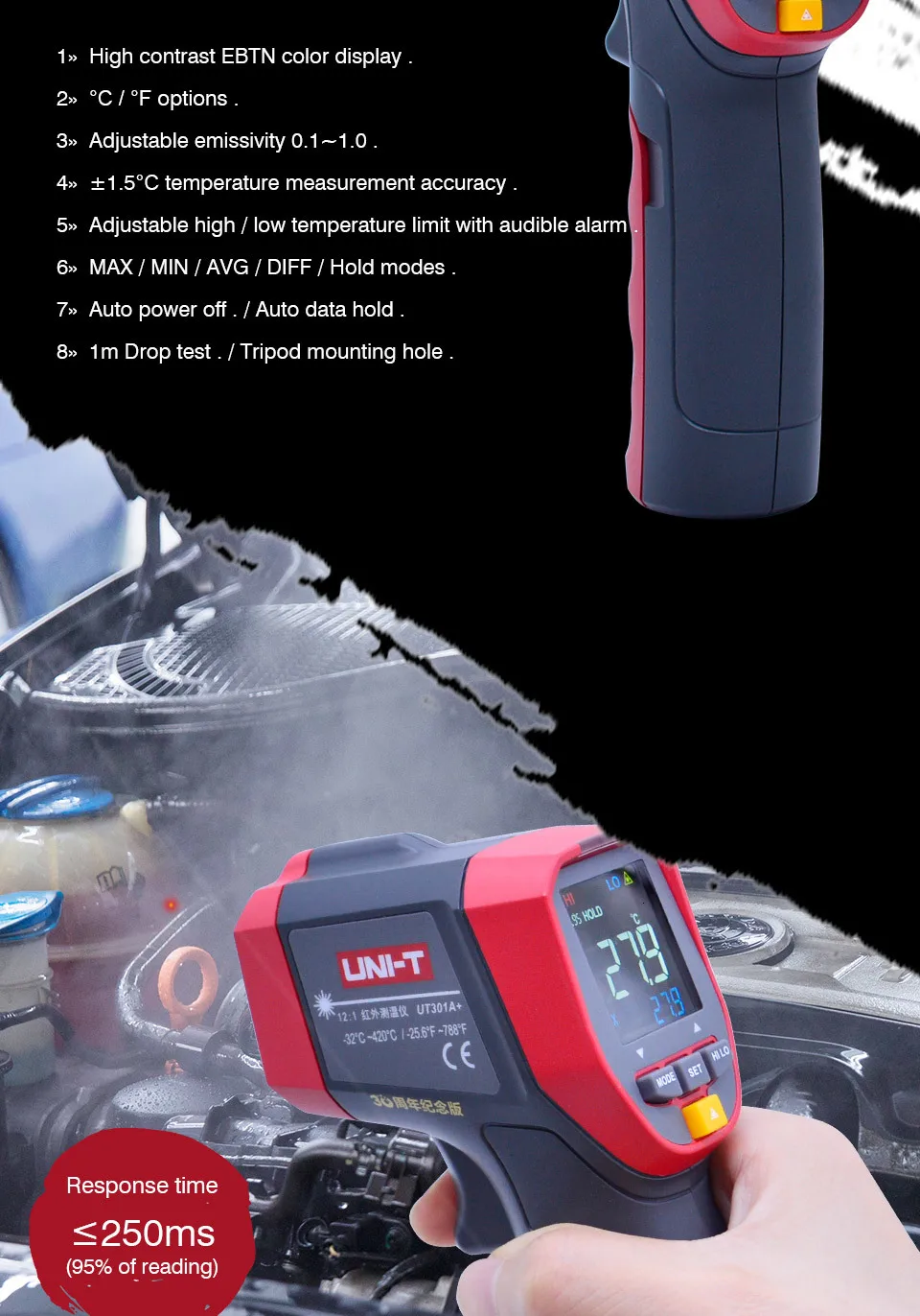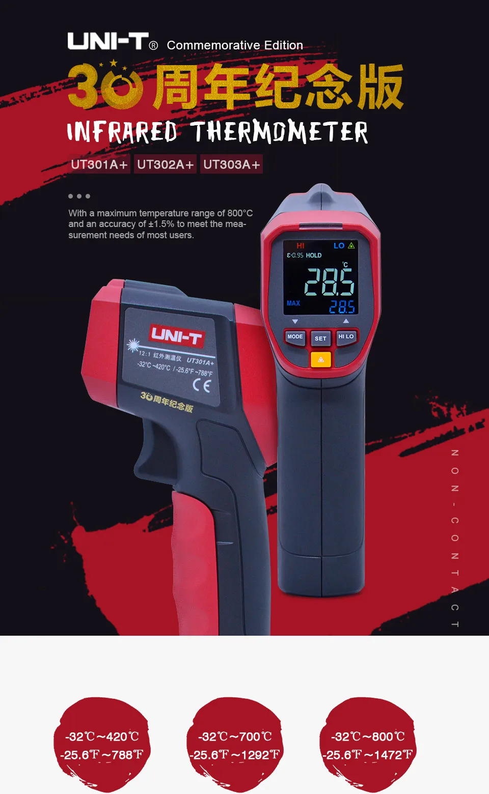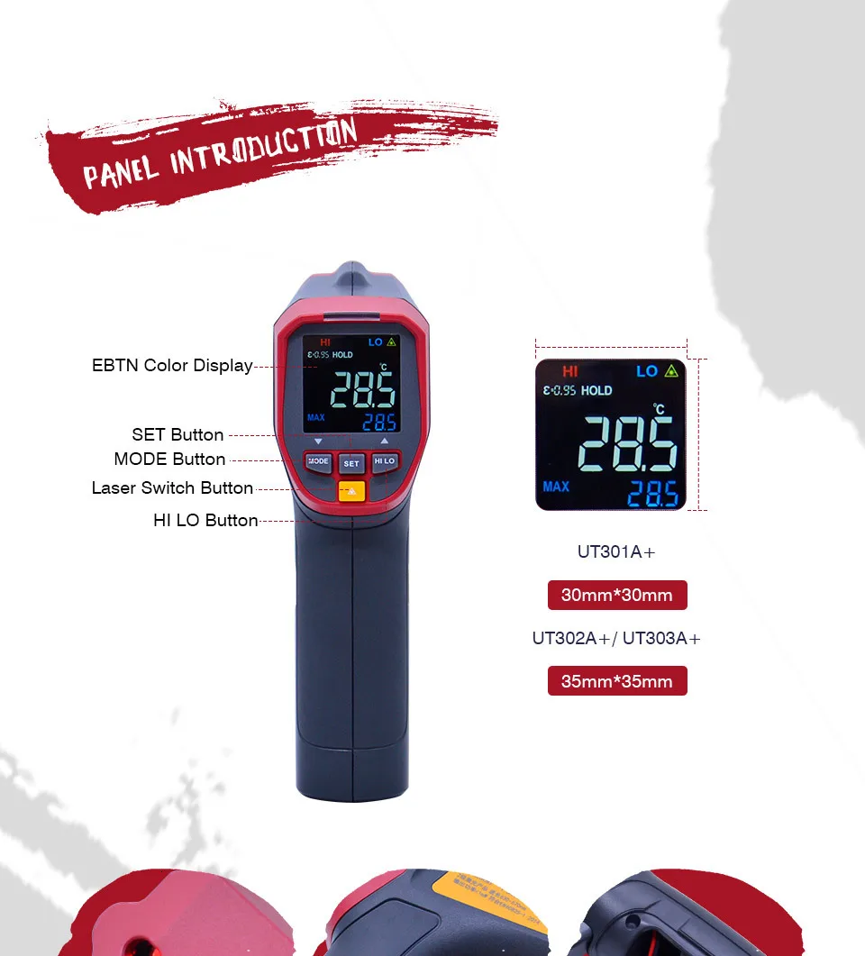 UNI-T Бесконтактный измеритель температуры UNI-T UT300A + Серия лазерный ИК инфракрасный термометр инфракрасный температурный пистолет ЖК-подсветка