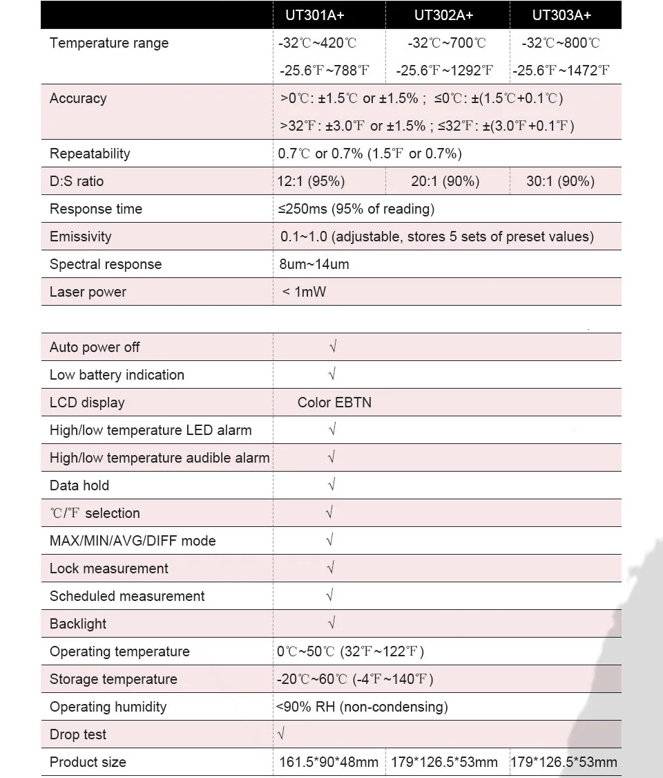 | UT301A + | UT302A + | UT303A + | |