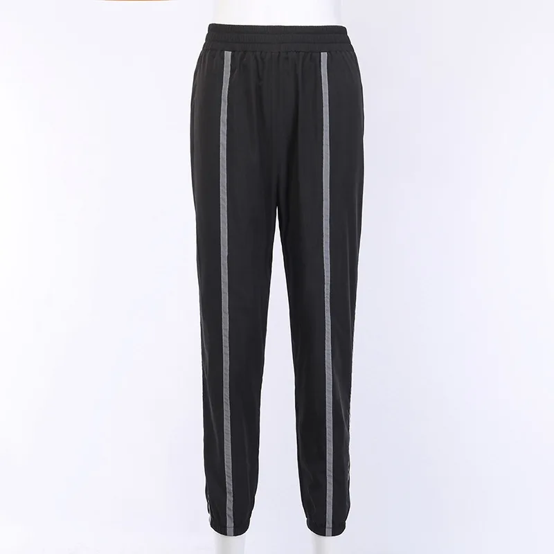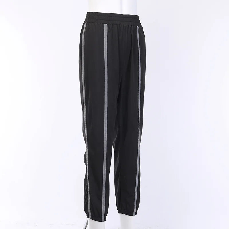 Женские Светоотражающие джоггеры черные Гаремные Брюки 2019 Модные женские