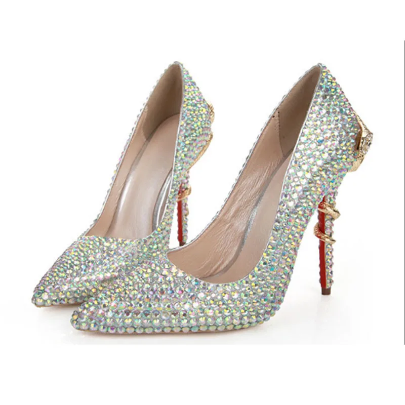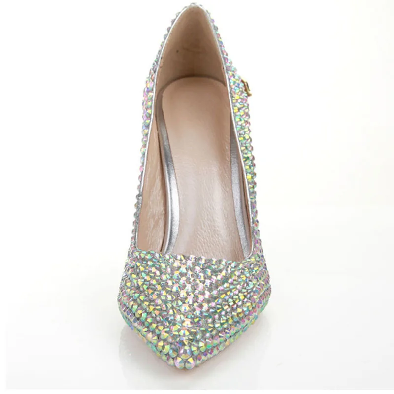Зимняя кожаная обувь на высоком каблуке в Корейском стиле; Роскошная женская обувь на высоком каблуке с острым носком и стразами; Свадебные туфли подружки невесты