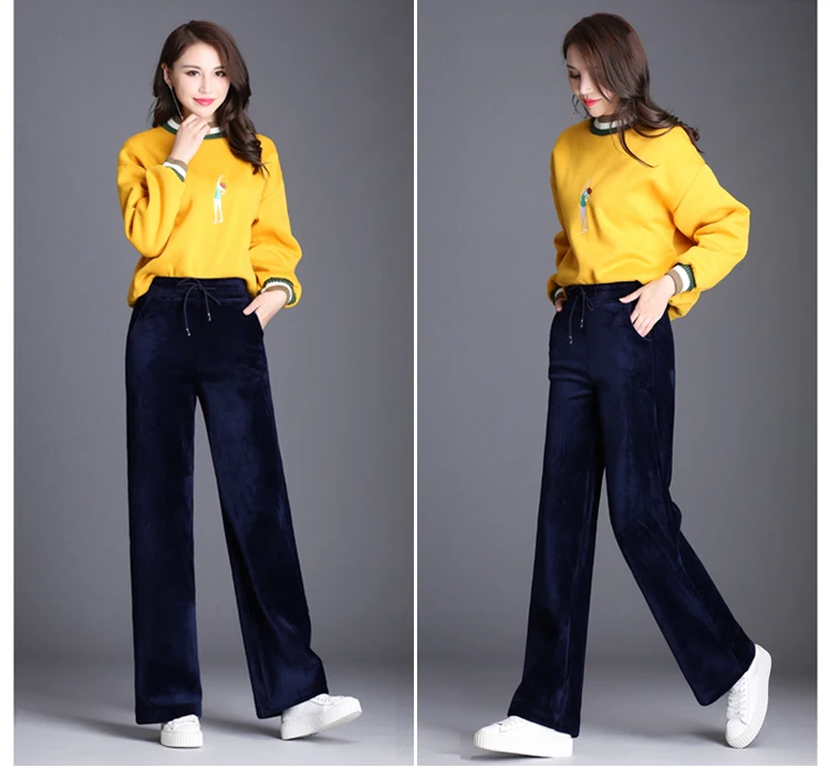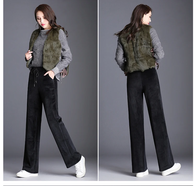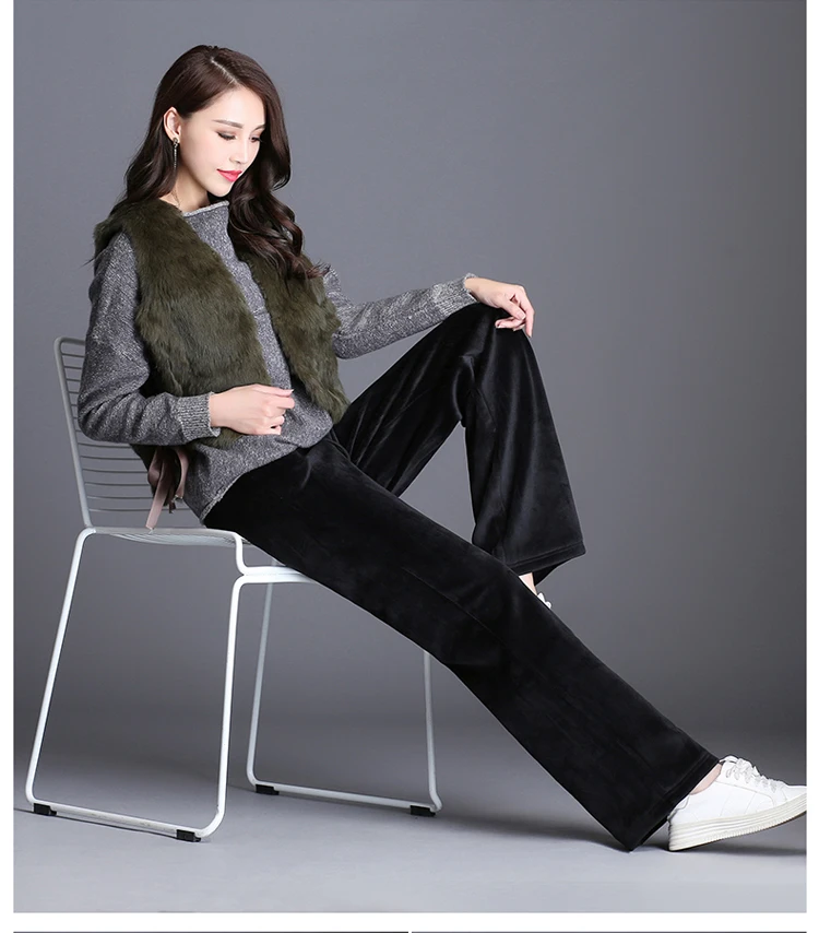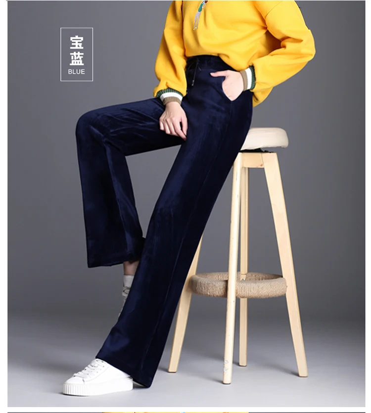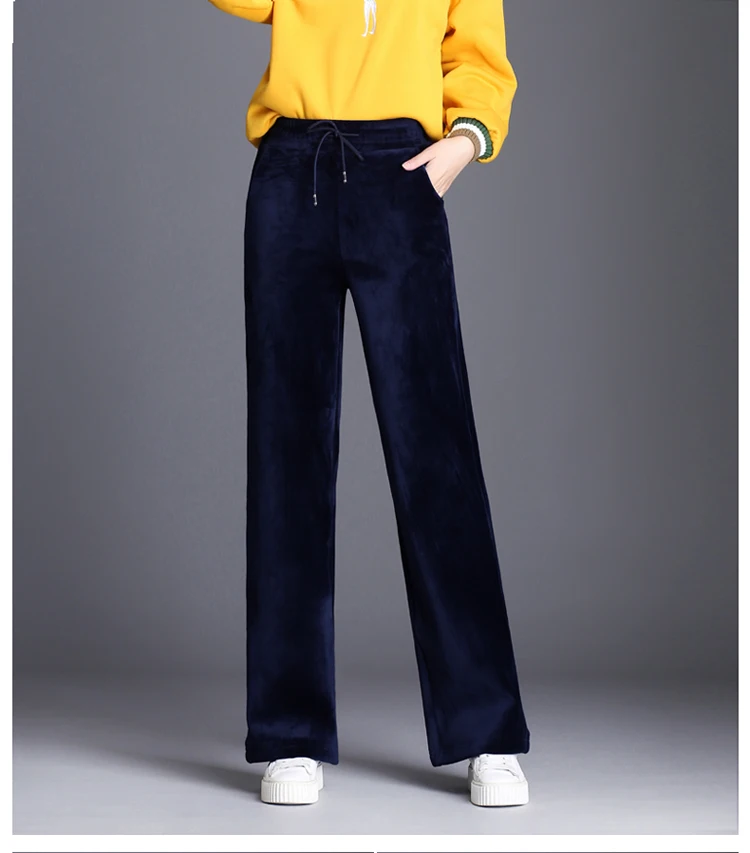 2019 зимние теплые толстые женские длинные вельветовые брюки английские свободные прямые широкие велюровые брюки плюс размер бархатные брюки DC273 <