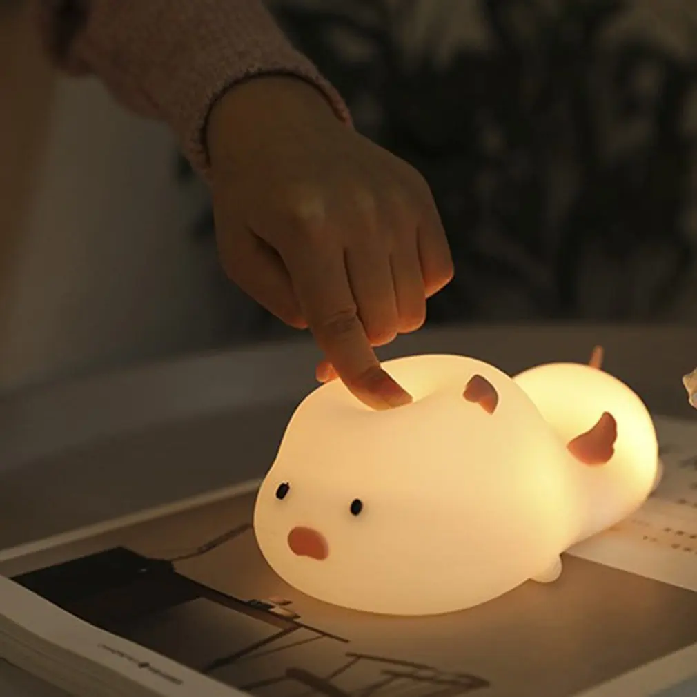 Форма свиньи потрепанный силиконовый ночник прекрасная светодиодная перезаряжаемая лампа Рождественский подарок для детской комнаты многоцветный сенсорный ночник