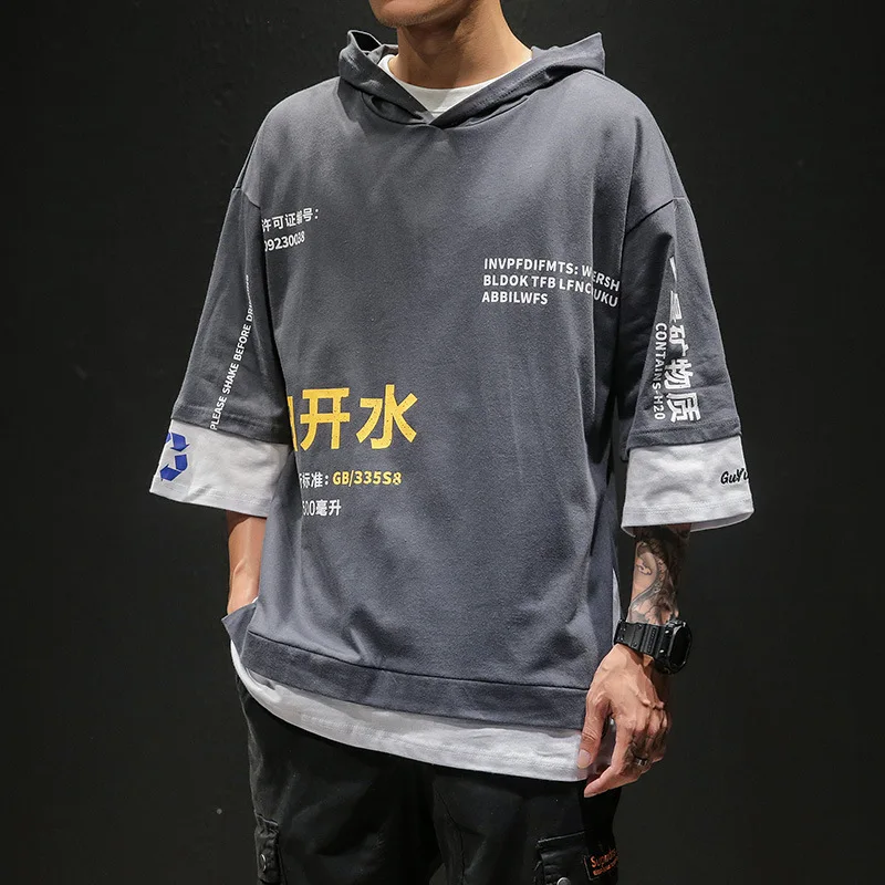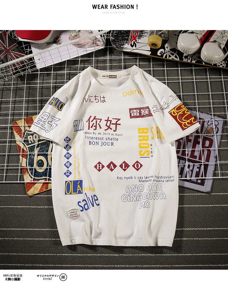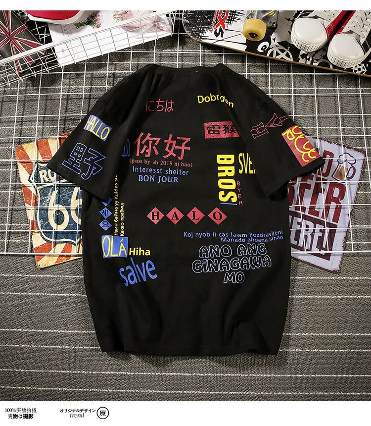 Футболки с принтом уличная одежда 2019 хип хоп Китайский Персонаж повседневные топы с короткими рукавами футболки мужские футболки