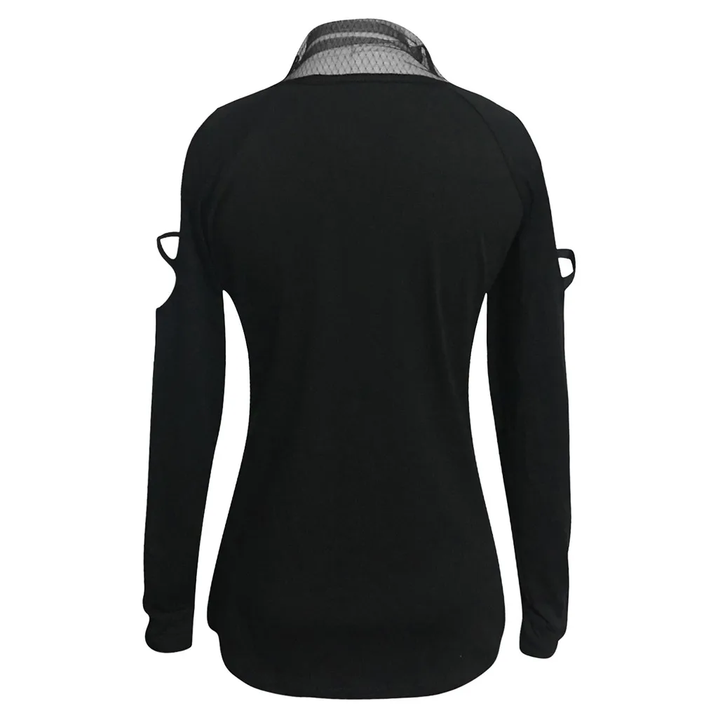 Blusas Mujer de Moda 2019, Женская Осенняя Базовая футболка, свободные однобортные рубашки с длинными рукавами, сетчатый топ с высоким воротником