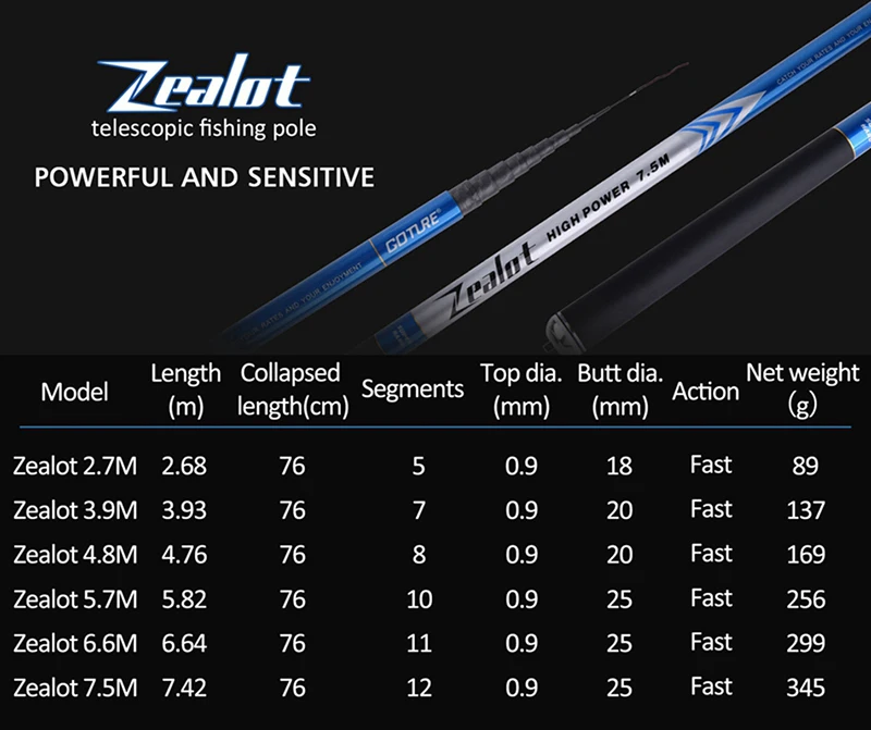 Goture Zealot телескопическая удочка из углеродного волокна 2,7-7,5 м ручные удочки для ловли карпа с 3 бесплатными подарками