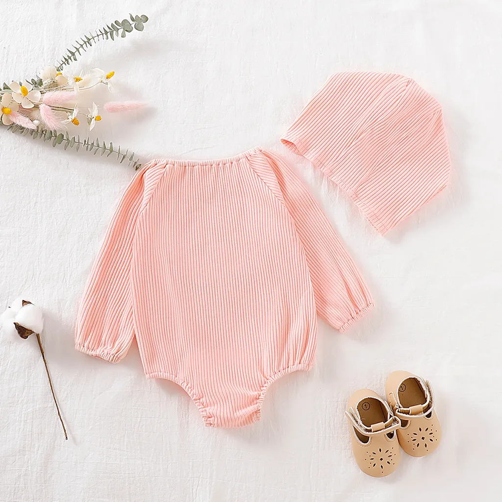 Комбинезон с длинными рукавами и рисунком для новорожденных мальчиков и девочек, боди + шапочка