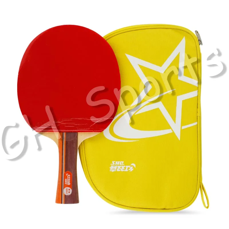-Хорошая ракетка для начинающих и тренировок. Модель: 2002 (длинная ручка FL)/2006 (короткая ручка CS) Уровень: 2 звезды для развлечений/начинающих Содержит: 1 ракетка + 1 сумка Лезвие: 7 слоев чистого дерева Резина: PF4-1 pips-in