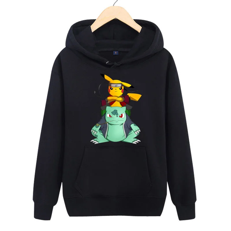 Новинка Осень Зима Kpop для мужчин Покемон толстовка с капюшоном длинным рукавом