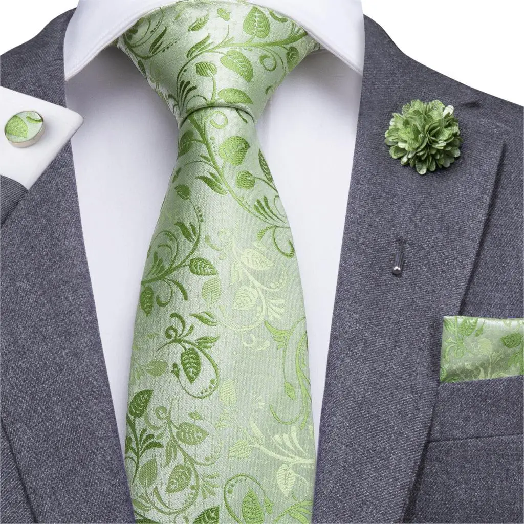 Hi-Tie Мужской Шелковый галстук травяной зеленый галстук цветочный галстук бутоньерка платок запонки набор свадебный галстук для жениха 8,5 см![aeProduct.getSubject()]()
