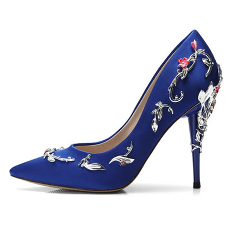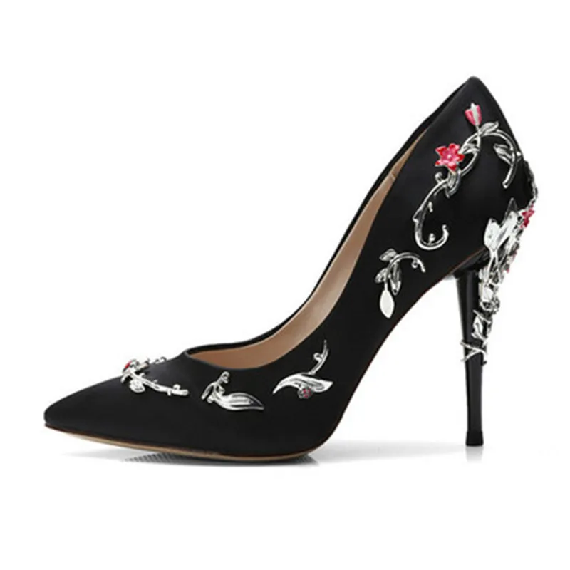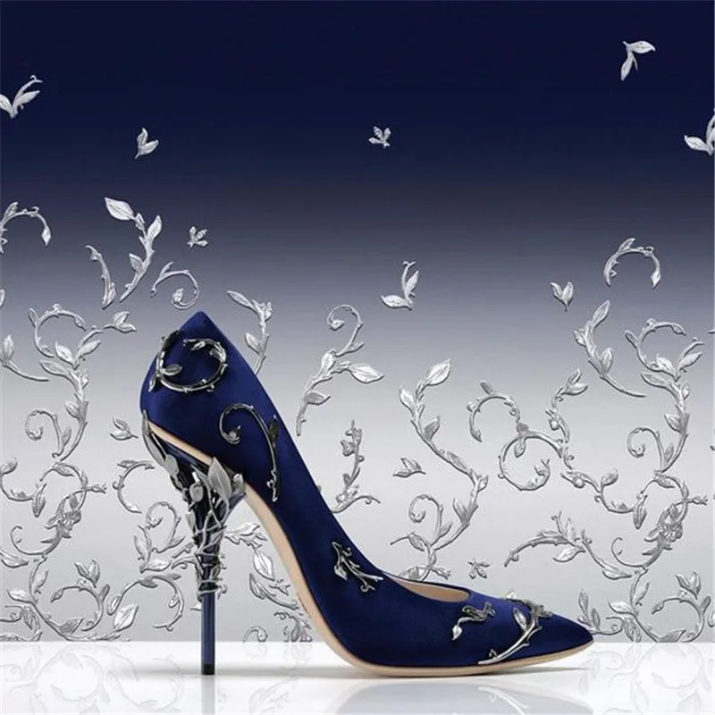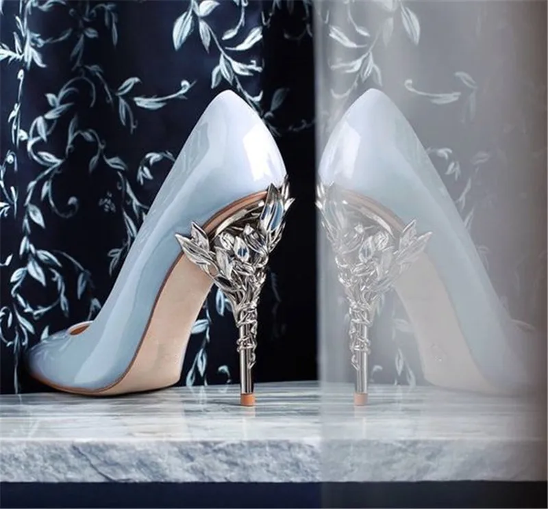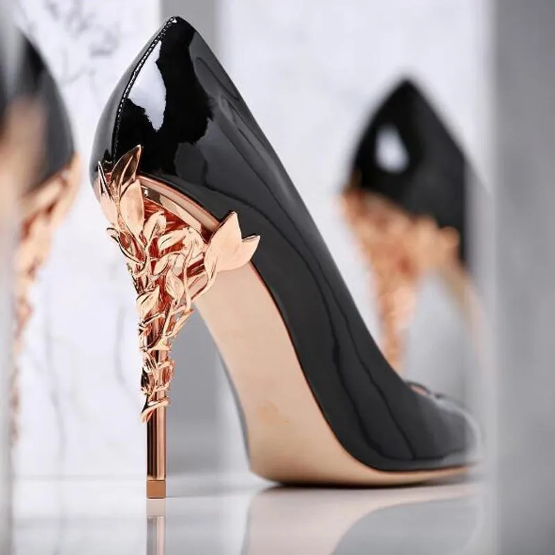 Роскошная женская свадебная обувь; Блестящие туфли-лодочки из лакированной кожи с металлическими листьями; Классические женские туфли на высоком каблуке