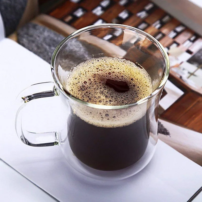 2. Холодный на ощупь: Держите пальцы в безопасности и прохладе с двойными стенками очков, термостойкая стеклянная посуда.