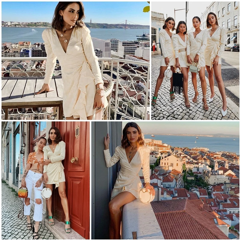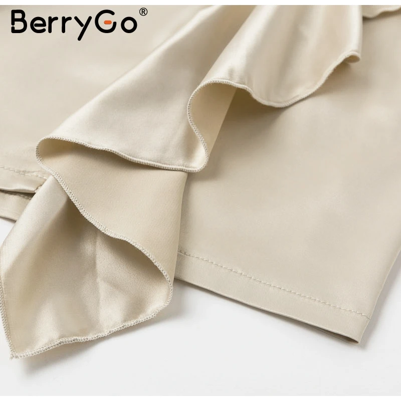 BerryGo, сексуальное атласное платье с v-образным вырезом и рюшами, Женский винтажный буф, вечерние платья с рукавами для клуба, женское Элегантное Шелковое офисное мини-платье