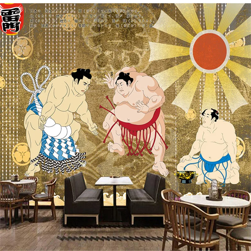 Японский самурайский сумо настенная бумага настенное покрытие японская кухня суши Ресторан промышленный Декор Фон настенная бумага 3D