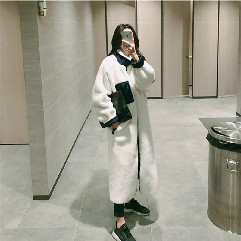 овчина Новинка очаровательное джинсовое лоскутное пальто из овечьей шерсти