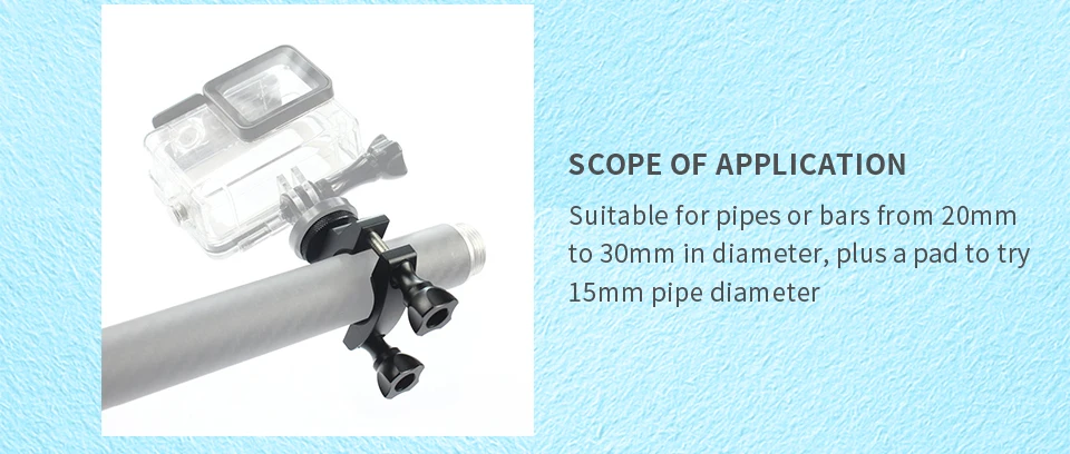 Это позволяет прикрепить камеры к рулю, подседельный штырь, лыжные палки и т. Д. Особенности зажима руля:DJI Osmo Feiyu Zhiyun Smooth Q и т. Д.