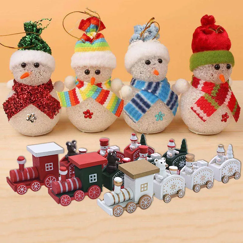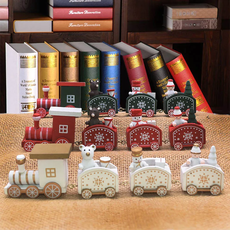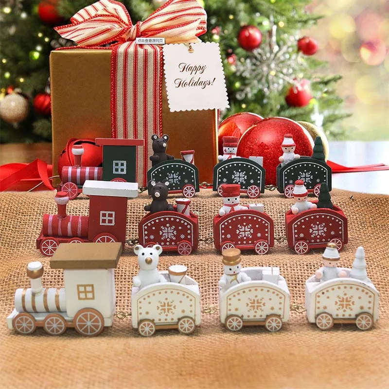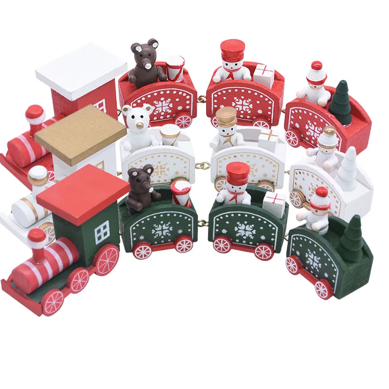 1 Комплект Новогодний Рождественский Декор покраска дерева поезд с Санта-мишкой снеговиком DIY Ручная работа детские игрушки для интерьера новогодние подарки