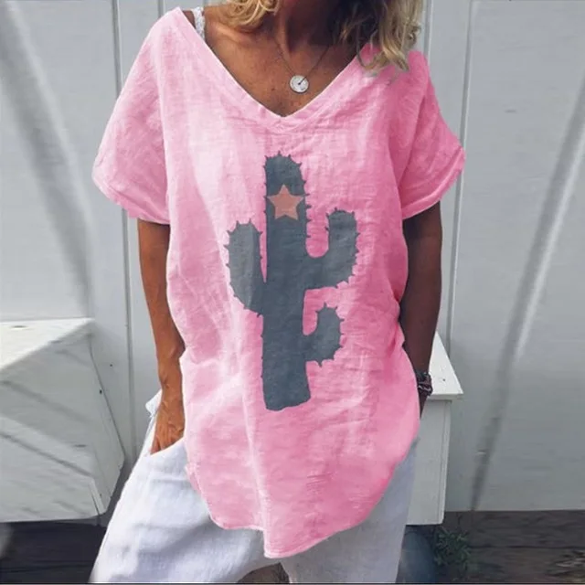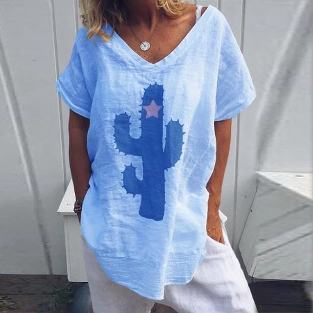 LuckBN Женская Повседневная Свободная блуза с принтом кактуса летняя блуза с v-образным вырезом и коротким рукавом Blusa Новые Модные женские блузы и топы