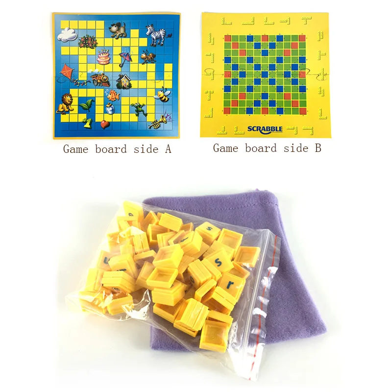 Scrabble-популярная игра в английском учебнике на Западном языке. На квадратной пластине 15 × 15 от 2 до 4 человек выделяют лексику и счет. Лексика указана по горизонтали в виде кроссворда и должна быть включена в обычный словарик. Разные буквы имеют разные баллы, которые определяются в соответствии с частотой возникновения на стандартном написанном английском языке. Например, E и O, которые часто возникают, имеют значение только 1 точка, но Q и Z, которые обычно не используются, имеют значение 10 точек. На тарелке есть разные Цветные сетки, и у них могут быть дополнительные точки.