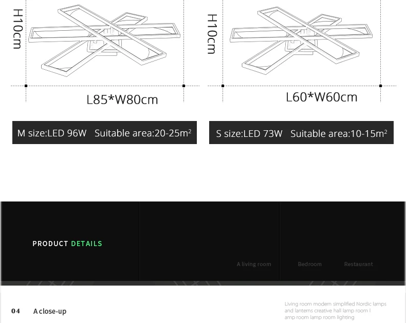 Мощность: 73 Вт 96 Вт 117 Вт Материал: железо + акрил Размер: l60xw60xh10см 73 Вт Площадь: 10-15 ㎡ Размер: l85xw80xh10см 96 Вт Площадь: 20-25 ㎡ Размер: L105xW100xH4cm 117 Вт Площадь: 25-30 ㎡ Цветовая температура: теплый свет/белый свет/ Яркость с регулируемой яркостью Напряжение: AC90-260V Способ установки: поверхностное крепление Срок гарантии: 2 года Примечание: Теплый свет: без пульта дистанционного управления, не- С регулируемой яркостью Белый свет: без пульта дистанционного управления, не- С регулируемой яркостью Яркость затемнения: с пультом дистанционного управления ( Без батареи), это означает, что свет может Контроль цвета и яркости лампы