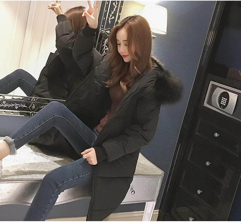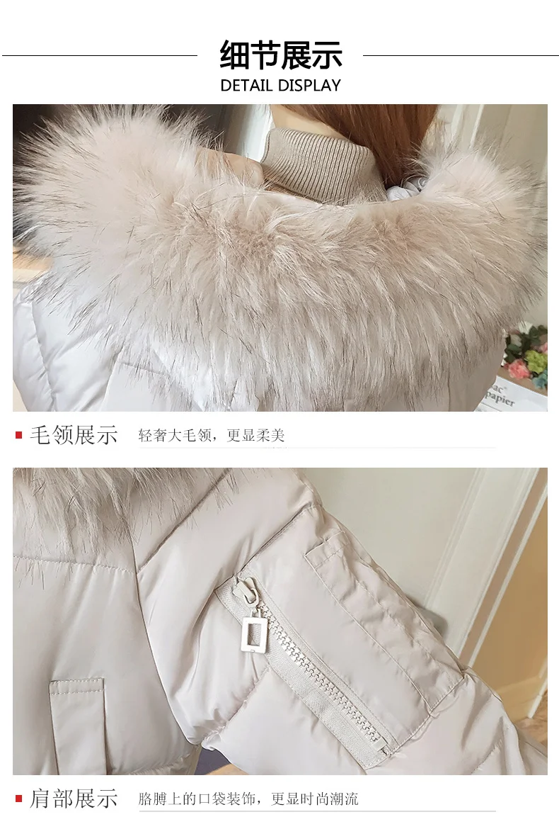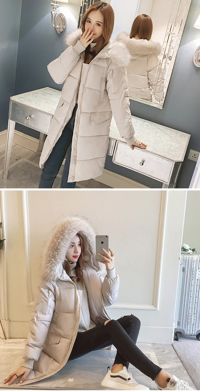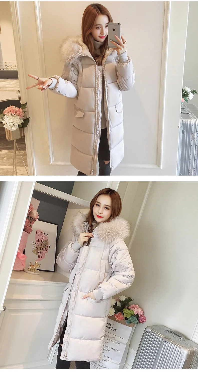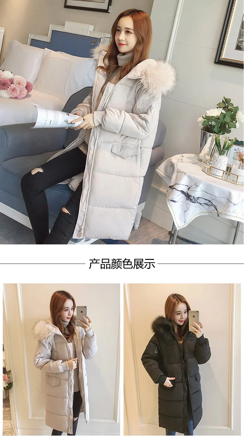 Новый 2019Высококачественная зимняя женская куртка, плюс размер, зимнее пальто с капюшоном, теплый меховой воротник, хлопковая подкладка, Длинные парки для женщин, Sz38