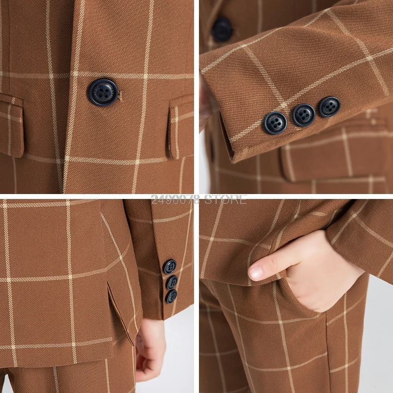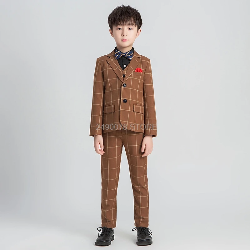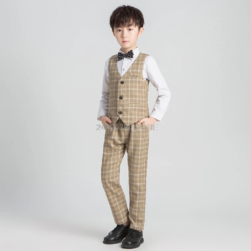 Attention plz: If your kid is chubby, we recomend choosing a larger size, thanks. Please kindly refer to your kids actual height and the size chart before buying/bidding. Thanks. Package included: jacket vest pants tie