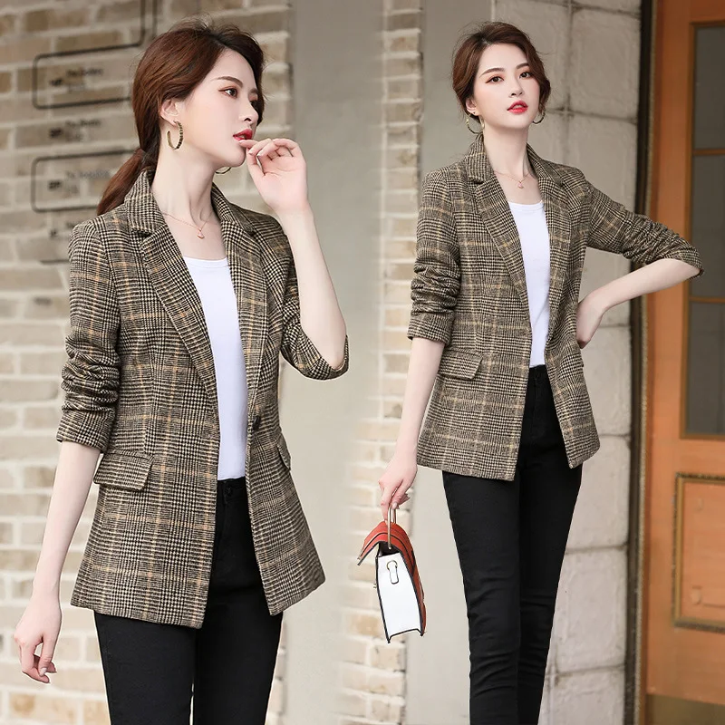 Осенняя и зимняя женская куртка Повседневный тонкий клетчатый блейзер с длинным рукавом деловой офисный костюм женский модный топ высокого качества
