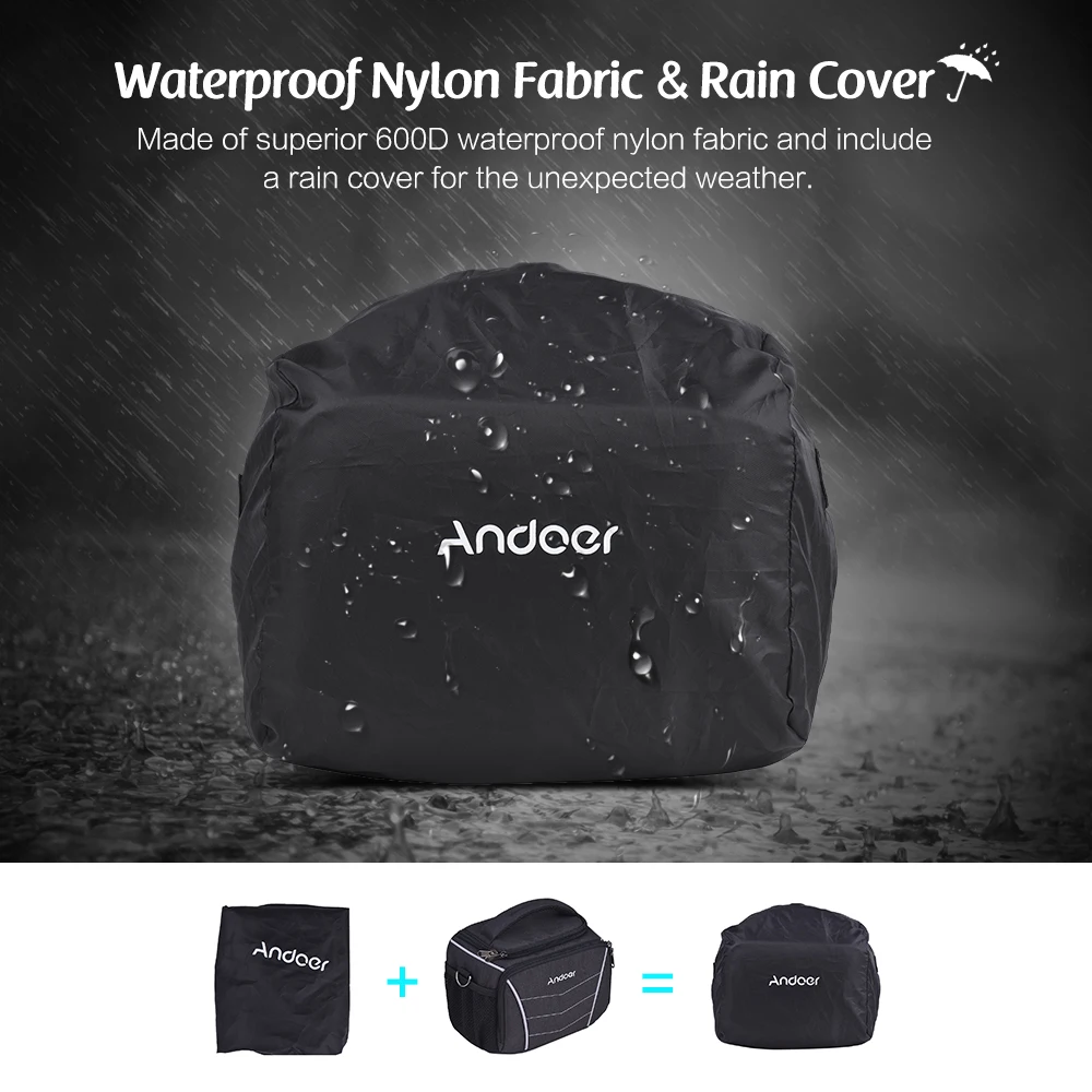 Andoer 600D тканевый материал стильная многофункциональная сумка через плечо для камеры с водонепроницаемым дождевиком для Canon Nikon Sony SLR DSLR Camera s Black