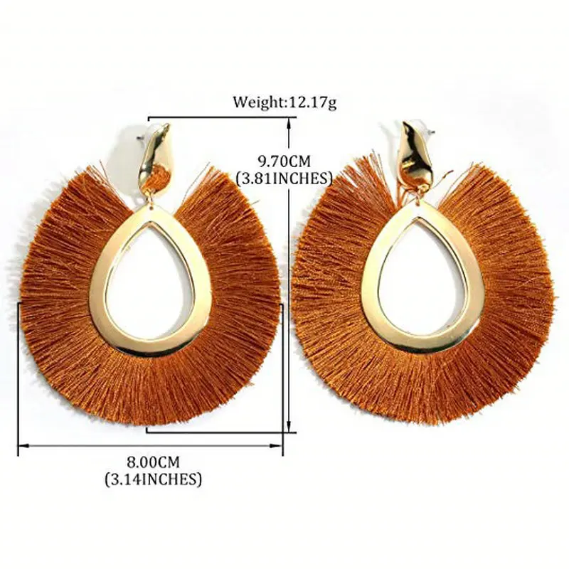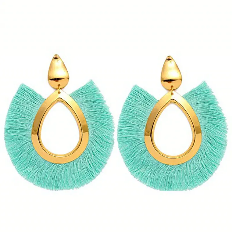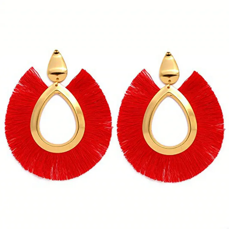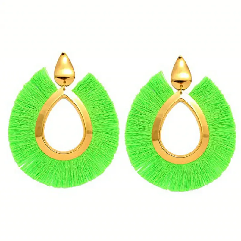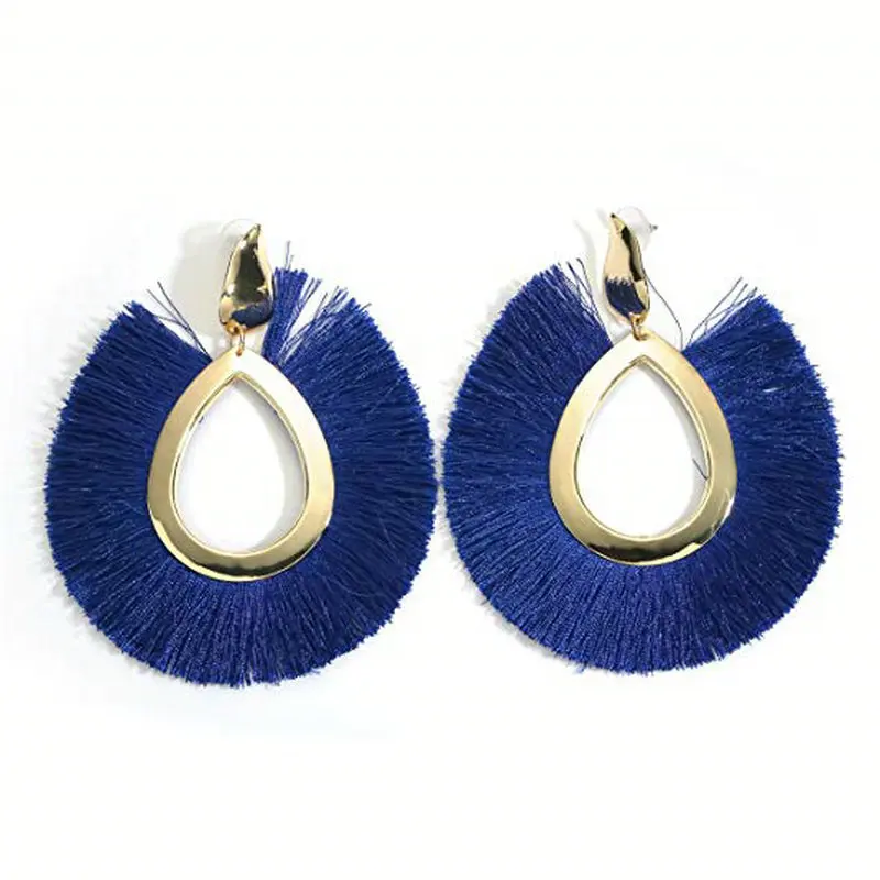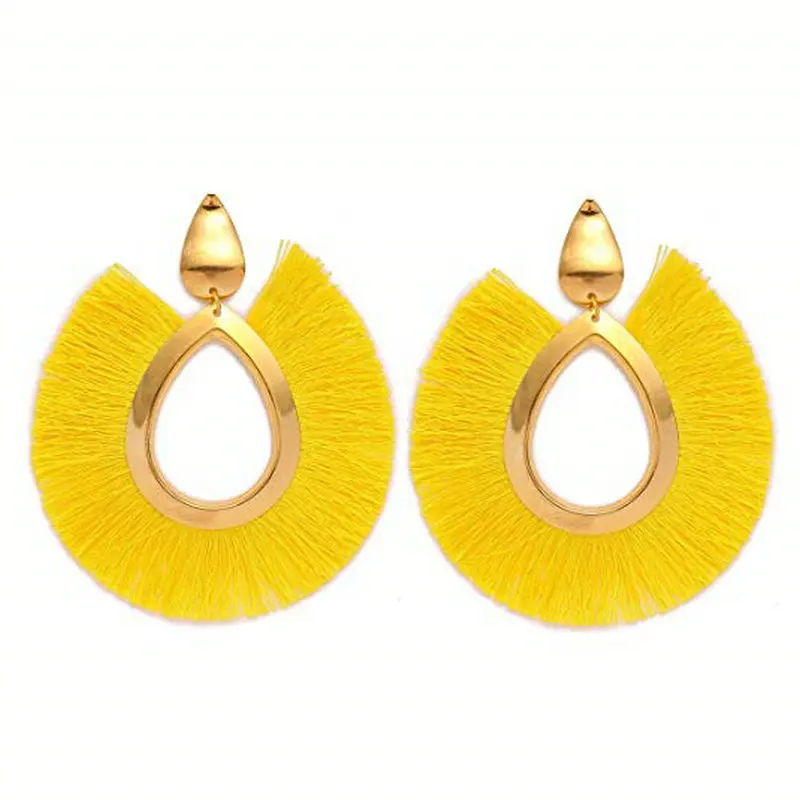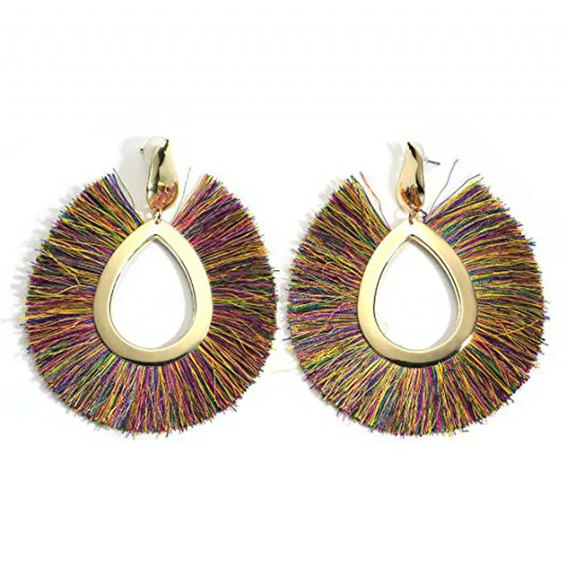 Яркая луна женские красочные богемные нитки кисточкой Висячие кольца овальные позолоченные серьги-висюльки ювелирные изделия для женщин