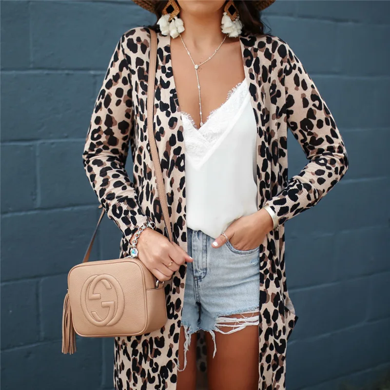 Женская шифоновая блузка с леопардовым принтом bluzki damskie, Повседневная пляжная блузка с длинным рукавом, лето 2019