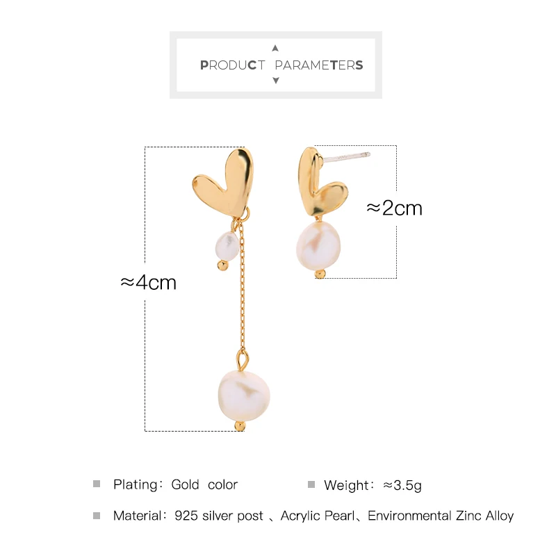 Простые Дизайнерские серьги-подвески для Для женщин асимметрия акриловая жемчужина серьги в форме сердца ручной работы Дата назначения подарок ювелирные аксессуары