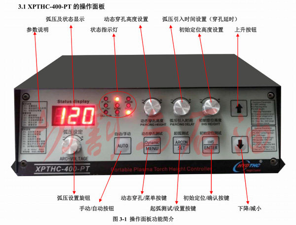 XPTHC-400-PT является основной характеристикой постоянного тока плазменного источника питания. Он обнаруживает изменение высоты фонарь в процессе плазменной резки, обнаруживая изменение напряжения плазменной дуги и реализует контроль высоты режущего фонарь. Подходит для большинства импортных товаров. Или отечественные Плазменные модели. Технические параметры Рабочий Источник питания: DC24V ± 10% Адаптационный Двигатель: DC24V DC мотор. Режим привода: ШИМ (режим модуляции ширины импульса). Выходной ток: 1A-2.5A, максимальная мощность 30 Вт. Рабочая температура: регулятор высоты-10 °F 60 ° C. Режим первоначального позиционирования: метод позиционирования контактного переключателя и режим позиционирования приближения. Режим передачи данных: Обнаружение напряжения дуги, пробить полный выход. Коэффициент частичного давления: 50:1 Точность управления: Установите Напряжение дуги и фактическое напряжение дуги ± 1 В ± 3 в, что связано с механизмом подъема и пусковым напряжением двигателя. Размеры: Длина X Ширина X Высота: 254mmX171mmX70mm. Автомат для резки фонарь скорость подъема: 1000 мм/мин ∽ 4000 мм/мин (Рекомендуемая температура: 2500 мм/мин). Набор дуги Диапазон напряжения: 30V ∽ 250V, который может быть изменен в соответствии с различными случаи применения. Режим защиты от перегрузки: PWM регулировка ширины импульса, защита от перегрузки по току. Максимальная скорость отслеживания резки: 10000 мм/мин (зависит от исходного напряжения, скорости и настроек чувствительности пользователя).