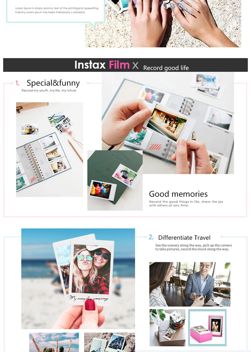 Эта пленка 54*86 мм предназначена для Fujifilm Instax Mini 7s/8/25/90/9. С белым краем фото для информации DIY. Хороший партнер для вашего незабываемого путешествия.