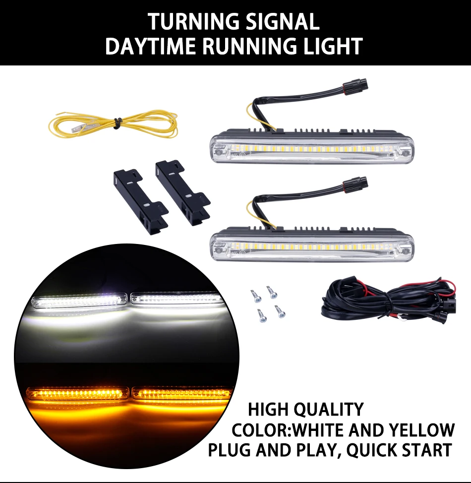 Наименование товара: светодиодный светильник дневного света 100% новый и высокое качество Цвет: белый и желтый (сигнал поворота) Материал: Органический пластик Номинальное напряжение: 12 В постоянного тока Рабочий ток: DC 1.12A Объектив: E4 RL00 DRL пластиковый чехол Срок службы: 500000- 100000 часов Количество СВЕТОДИОДНЫЙ на штуку: 6 Количество штук: 2 Размер: 18,2*2,4*3 см Посылка включает в себя: 2 шт. дневные ходовые огни